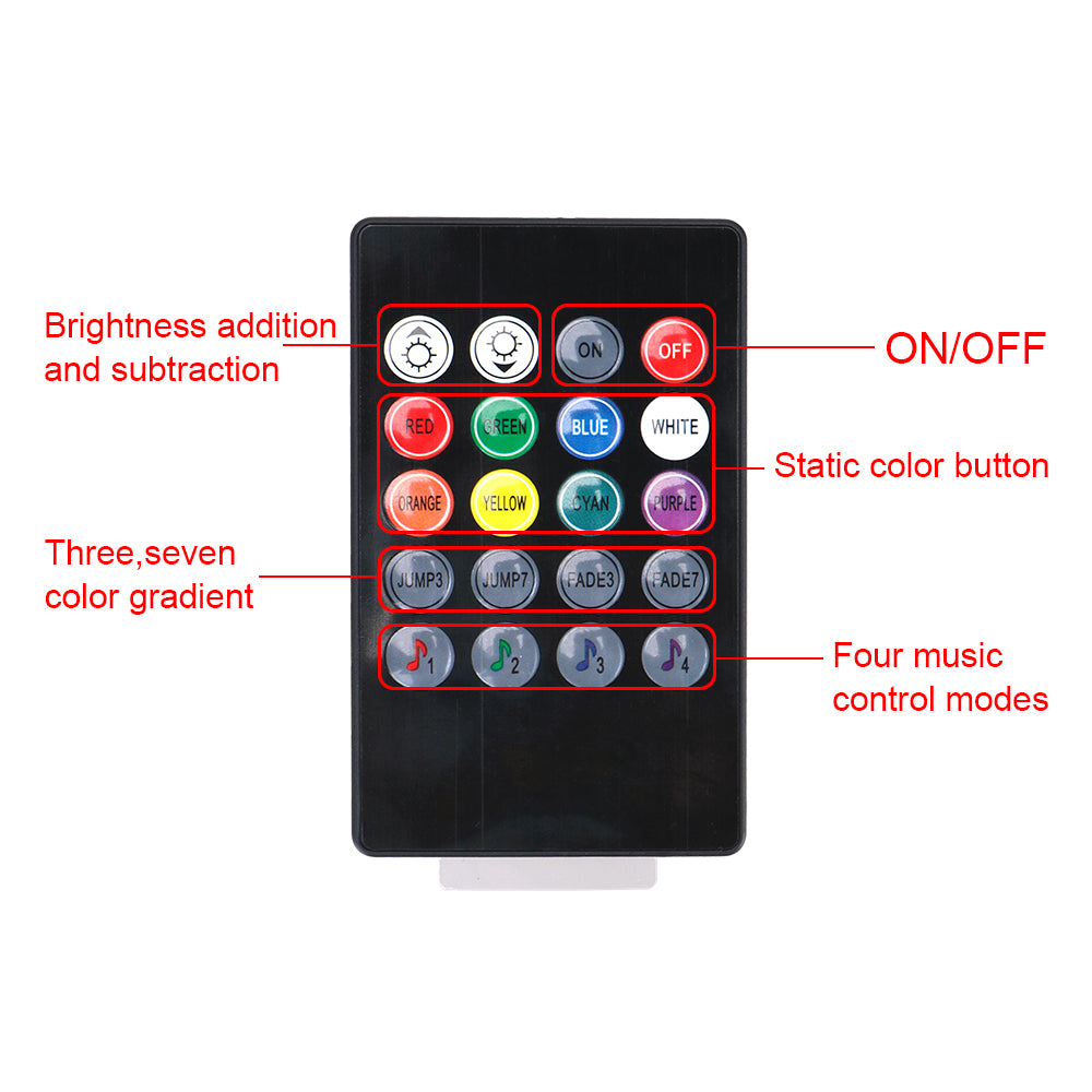 Grâce à la commodité d'une télécommande, vous pouvez facilement changer la couleur et la luminosité des lumières intérieures de votre voiture. Impressionnez vos amis et ajoutez une touche unique à votre véhicule avec cet accessoire à la fois amusant et fonctionnel.